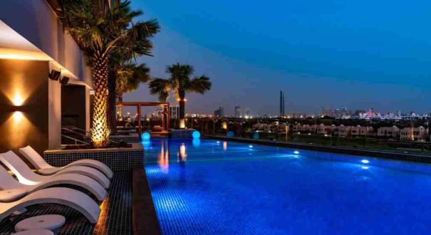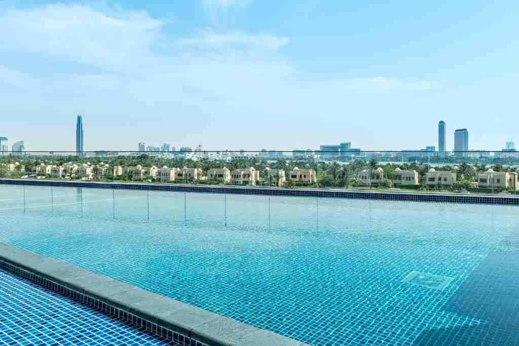 استخر هتل روی پشتبام قرار دارد و منظرهای خیرهکننده به شهر دبی و آسمانخراشهای اطراف دارد. مهمانان میتوانند در طول روز از شنا و آفتابگرفتن لذت ببرند یا شبها در فضایی رمانتیک کنار استخر استراحت کنند.