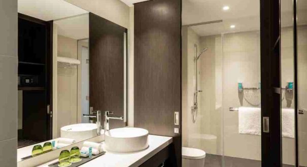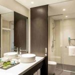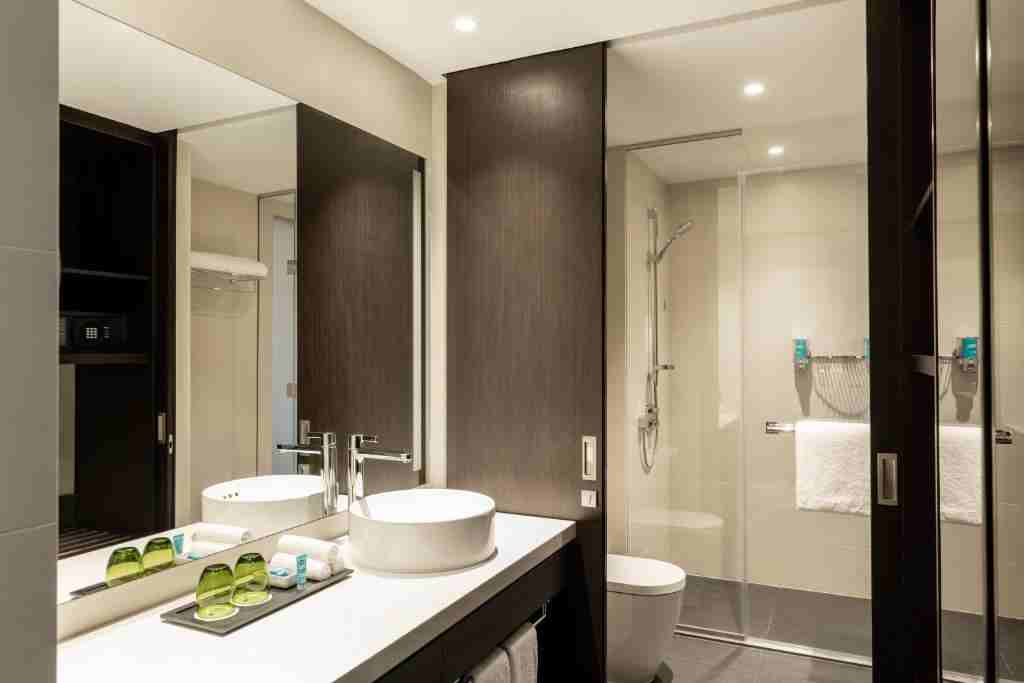 حمامهای اتاقها با طراحی مدرن و استاندارد ساخته شدهاند. دوش شیشهای بارانی، حولههای نرم و لوازم بهداشتی رایگان در اختیار مهمانان قرار دارد تا تجربهای راحت و لوکس داشته باشند.