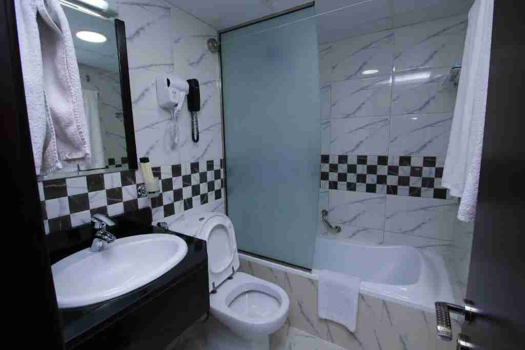 حمام اختصاصی مجهز به دوش مدرن، لوازم بهداشتی رایگان و حولههای تمیز