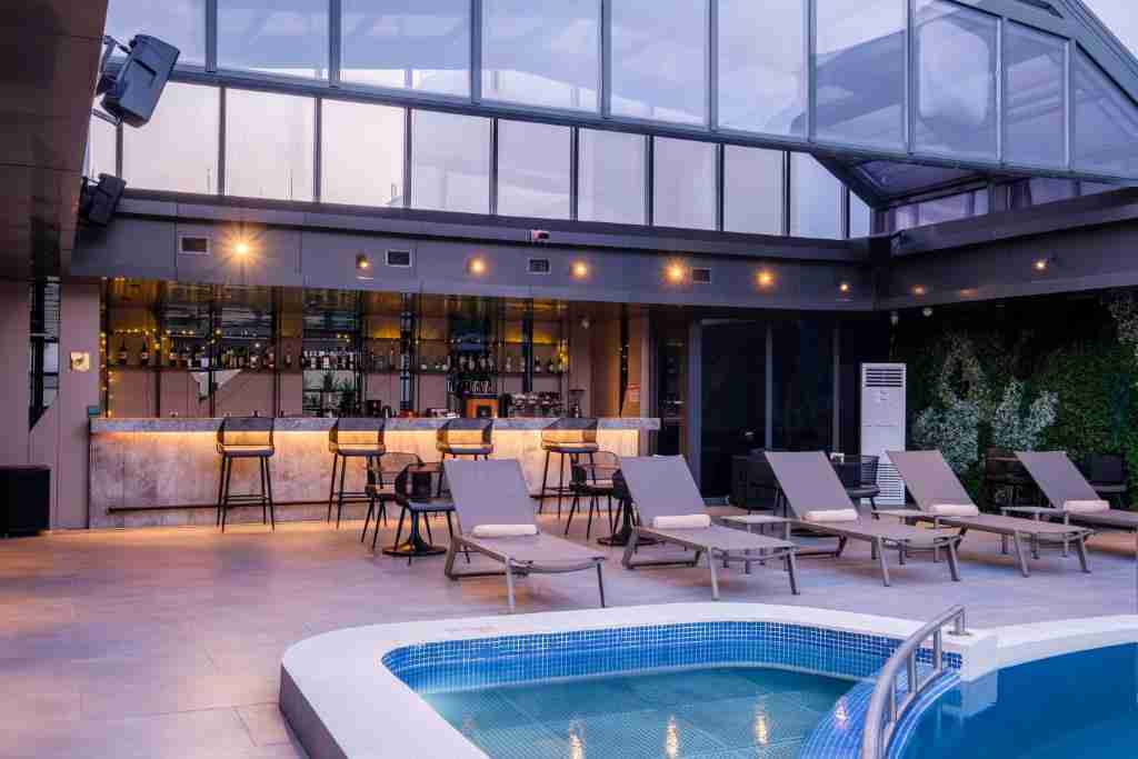 بر روی پشتبام هتل یک استخر روباز قرار دارد که در فصول گرم سال مورد استفاده قرار میگیرد. این استخر محیطی دلنشین برای استراحت، آفتاب گرفتن و لذت بردن از چشمانداز شهر فراهم میکند. در فصول سرد نیز این استخر بهصورت گرمشونده استفاده میشود تا در تمام طول سال در دسترس مهمانان باشد.