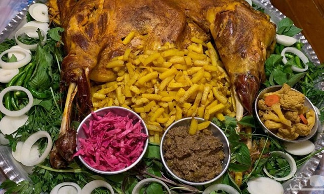 📌 غذا در سینیهای بزرگ و بهصورت اشتراکی سرو میشود.