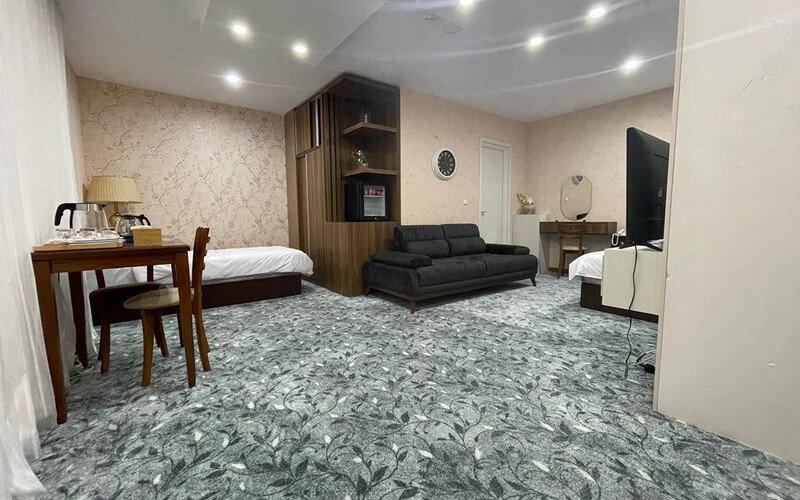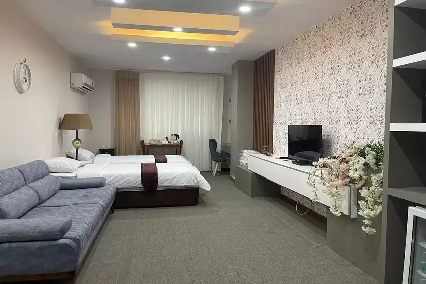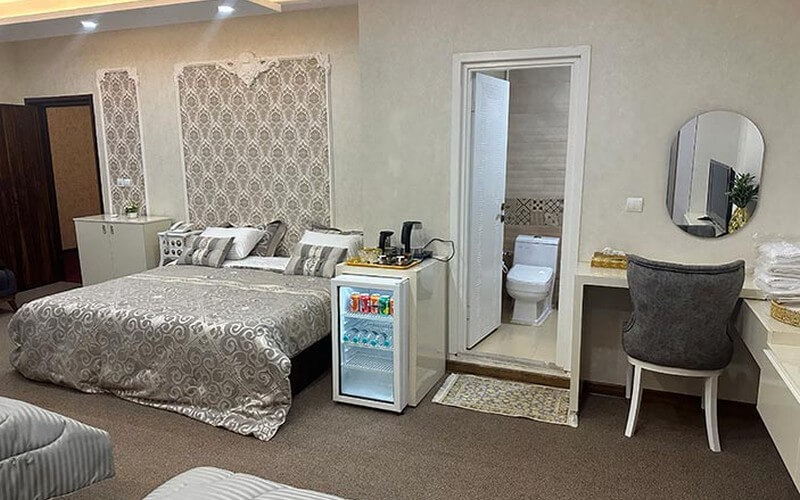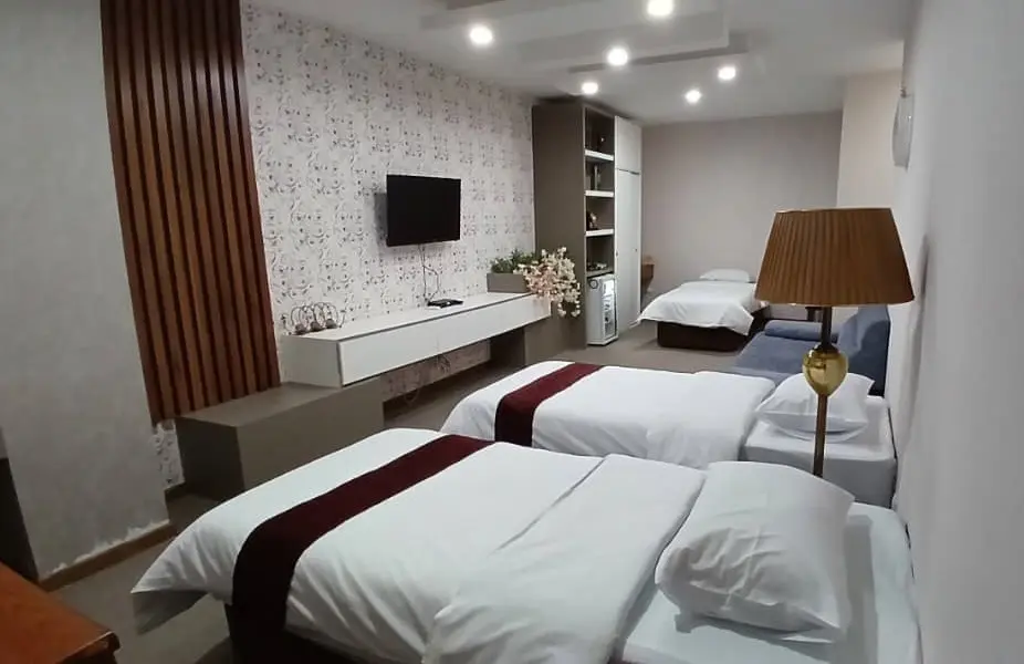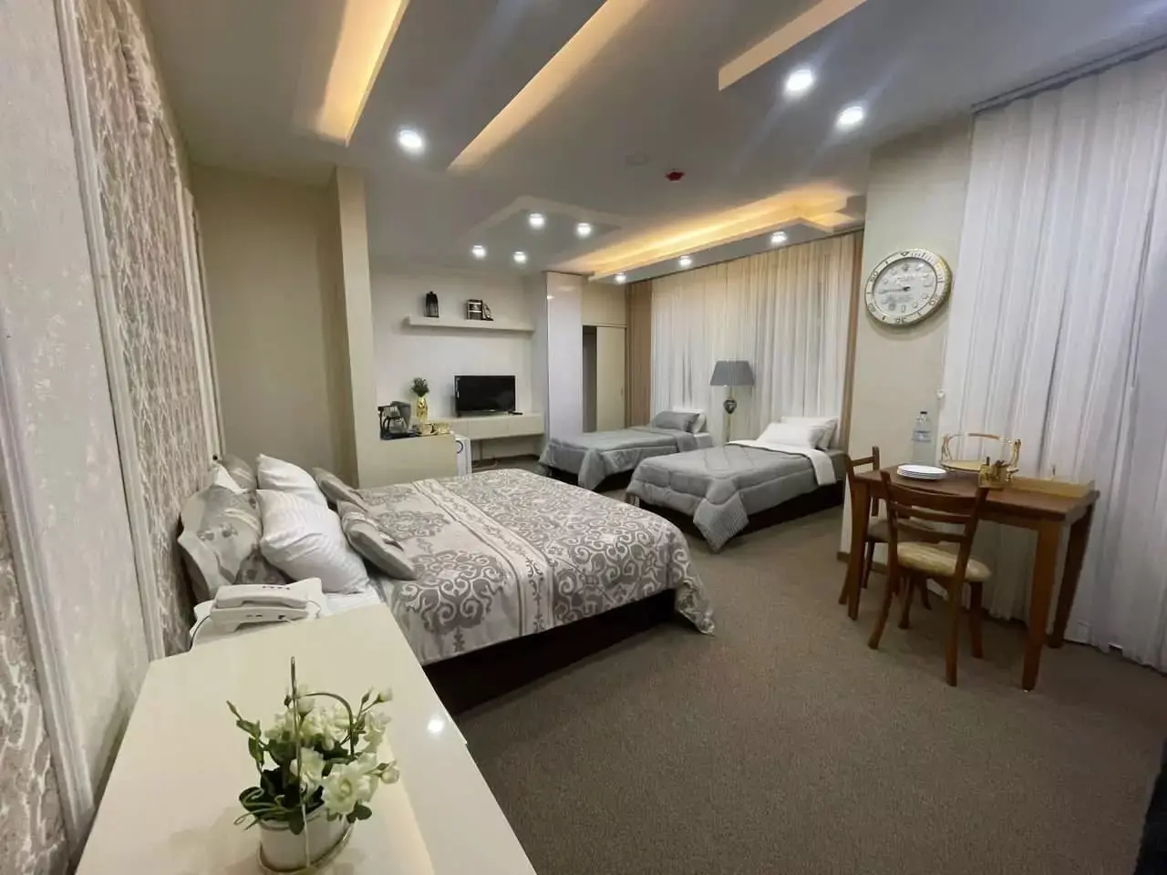 اتاق سه تخته فضای بزرگتری دارد و برای خانوادههای کمجمعیت بسیار مناسب است. نورگیری خوب، مبلمان کاربردی، تختهای استاندارد و چیدمان منظم، این اتاق را به گزینهای ایدهآل برای اقامت اقتصادی و راحت تبدیل میکند.