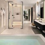 حمام لوکس با دوش بارانی، وان، لوازم بهداشتی رایگان و حولههای نرم