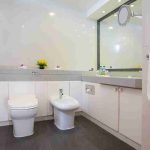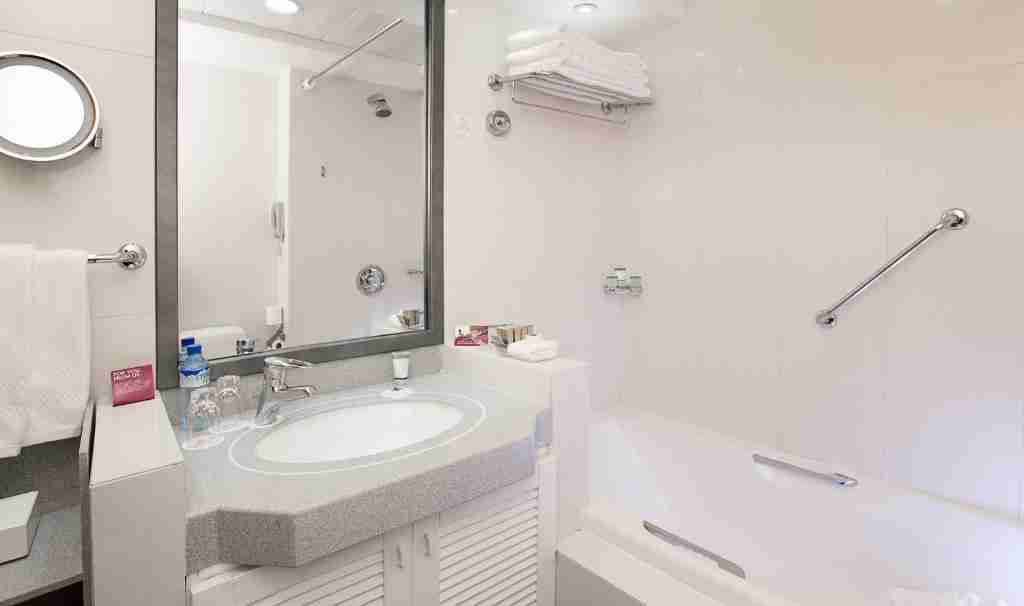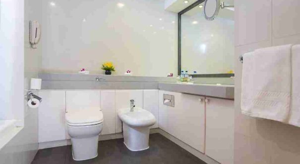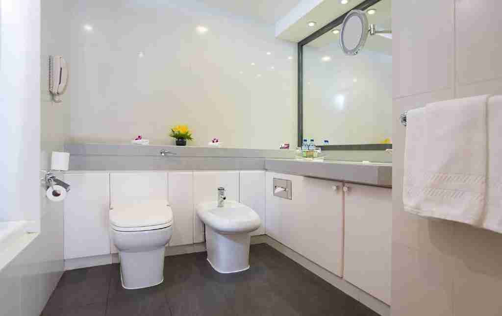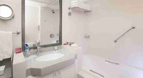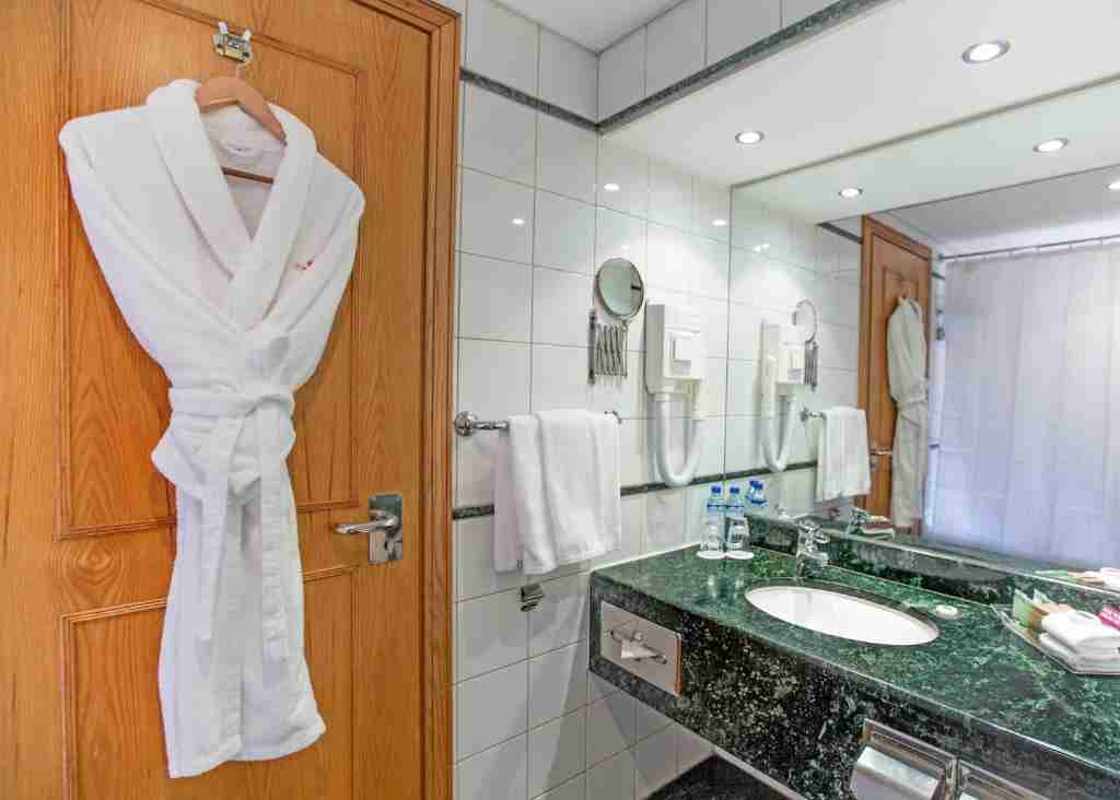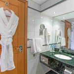 حمام اختصاصی مجهز به دوش مدرن، لوازم بهداشتی رایگان و حولههای نرم