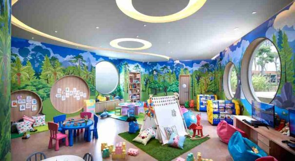 در این هتل، زمین بازی و خدمات مخصوص کودکان ارائه میشود تا خانوادهها بتوانند با خیال راحت از سایر امکانات استفاده کنند. فضای رنگارنگ و ایمن این بخش، اوقات شادی برای کودکان فراهم میکند.