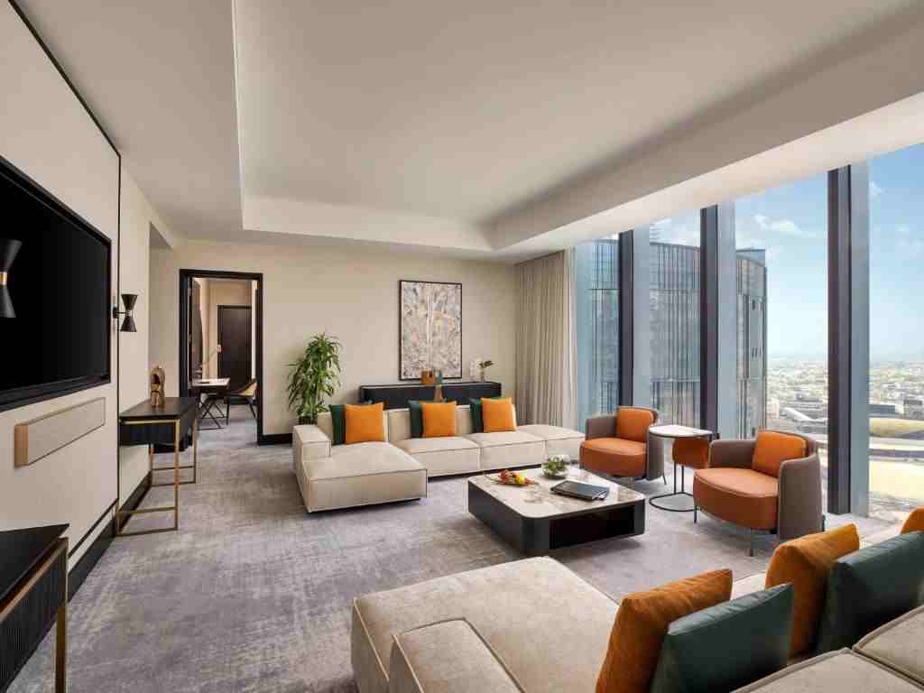 سوئیتی با تخت کویین، فضای نشیمن مجزا و طراحی لوکس که برای اقامتهای طولانیتر بسیار مناسب است.