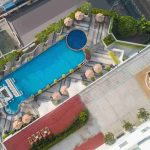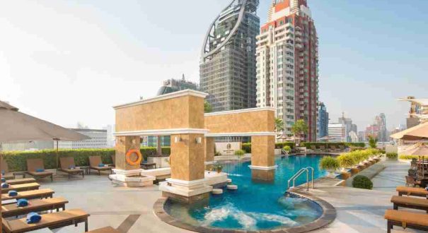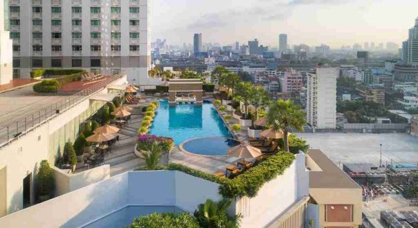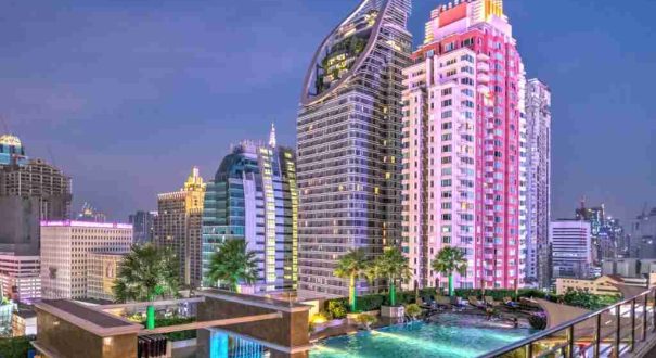 استخر بزرگ در طبقه بالا با منظره شهر بانکوک -