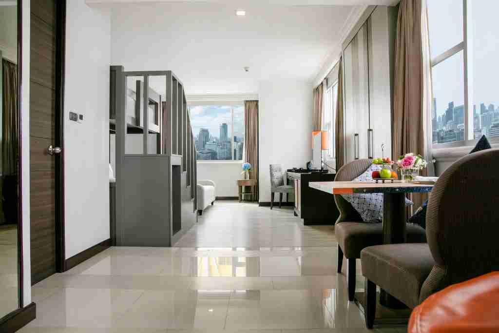 طراحی داخلی هر طبقه با ترکیبی از سبک تایلندی و مدرن انجام شده است. نور طبیعی از پنجرههای بزرگ وارد اتاقها میشود و چشماندازی زیبا از آسمانخراشهای منطقه پراتیونام به نمایش میگذارد.