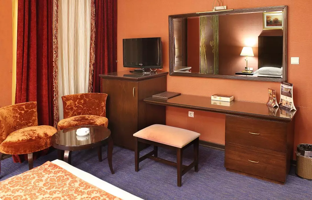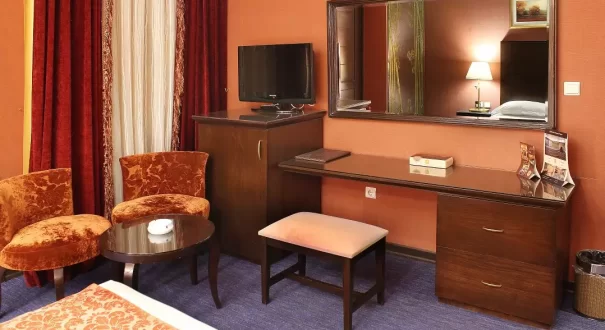 این اتاقها فضای بیشتری در اختیار مهمان قرار میدهند و با مبلمان، میز، سیستم تهویه، تلویزیون و سرویس بهداشتی مجهز، حس یک اقامت منظم و آرام را ایجاد میکنند.