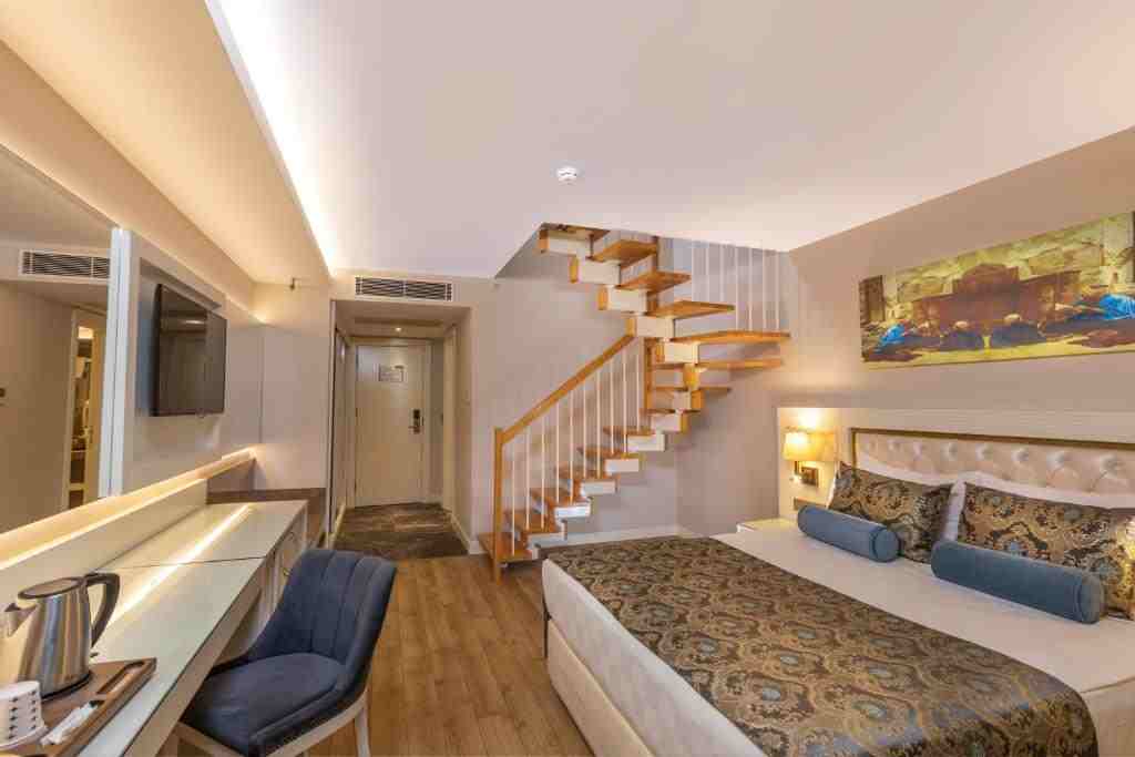 اتاق دوبلکس با طراحی دوطبقه، دو تخت توئین، یک تخت دبل و یک مبل تختخوابشو، فضای بیشتری در اختیار خانوادهها و گروههای پرجمعیت قرار میدهد.
