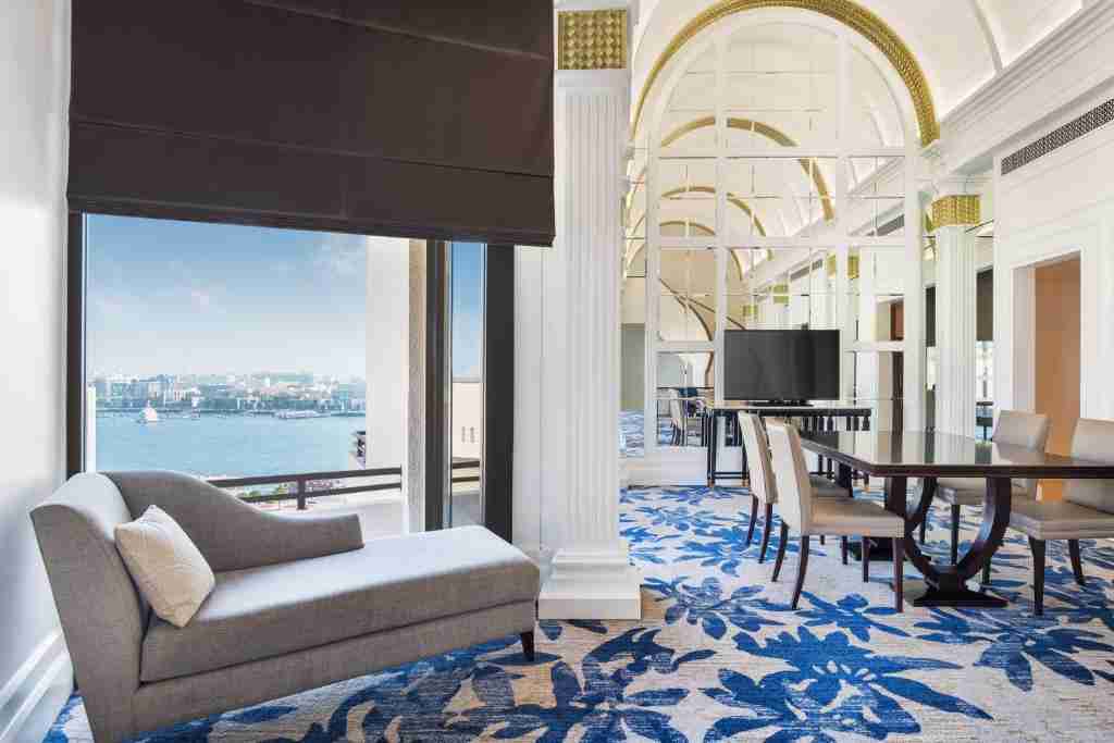 سوئیت پرزیدنشال با فضای بسیار بزرگ، امکانات لوکس و چشمانداز مستقیم به خور دبی، بالاترین سطح اقامت در این هتل را ارائه میدهد.