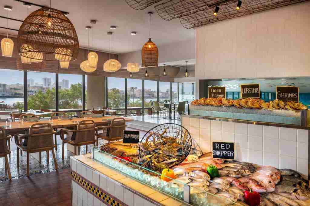 رستوران فیش مارکت با تمرکز بر غذاهای دریایی تازه، امکان انتخاب مستقیم ماهی و نحوه پخت دلخواه را برای مهمانان فراهم میکند و یکی از معروفترین رستورانهای این هتل محسوب میشود.
