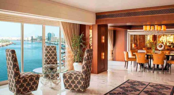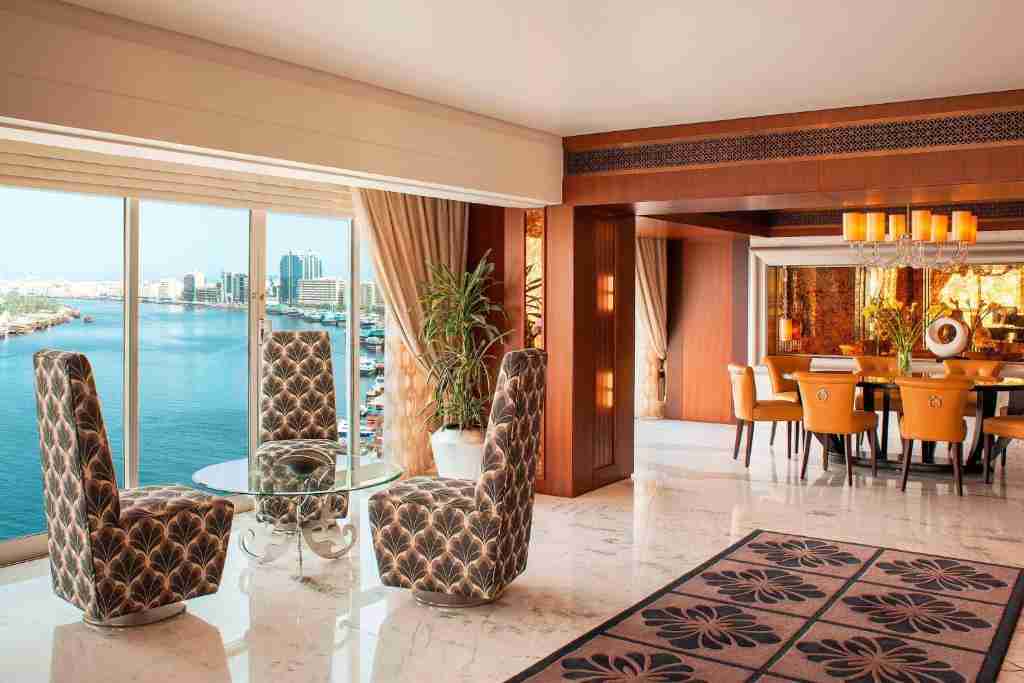 یکی از لوکسترین انتخابهای هتل؛ ترکیبی از فضای بزرگ، پذیرایی زیبا، مبلمان درجهیک و چشمانداز پانورامیک به کریک دبی.