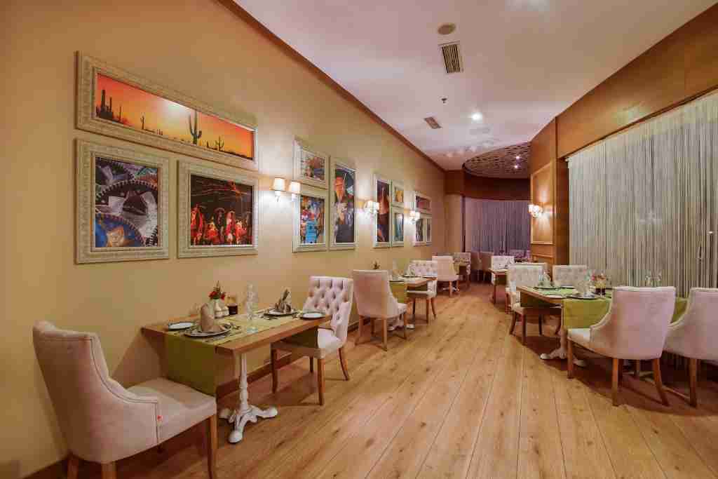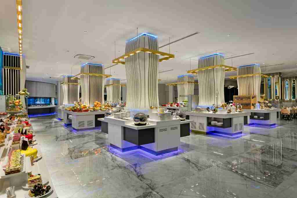 رستوران اصلی هتل با بوفهای متنوع، انواع غذاهای بینالمللی و ترکی را برای صبحانه، ناهار و شام سرو میکند. تنوع روزانه منو، کیفیت مواد اولیه و فضای وسیع، این رستوران را برای خانوادهها بسیار مناسب کرده است.