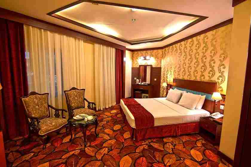 هر اتاق با دقت طراحی شده تا اقامتی آرام، بیصدا و مجهز را برای مهمانان فراهم کند. تلویزیون LED، سیستم تهویه مطبوع، اینترنت پرسرعت، یخچال، صندوق امانات، سرویس بهداشتی فرنگی و ایرانی، و میزکار از امکانات استاندارد تمام اتاقها هستند. نظافت روزانه، تعویض ملحفهها و خدمات رومسرویس ۲۴ ساعته، اقامت در این هتل را به تجربهای بینقص تبدیل کرده است.