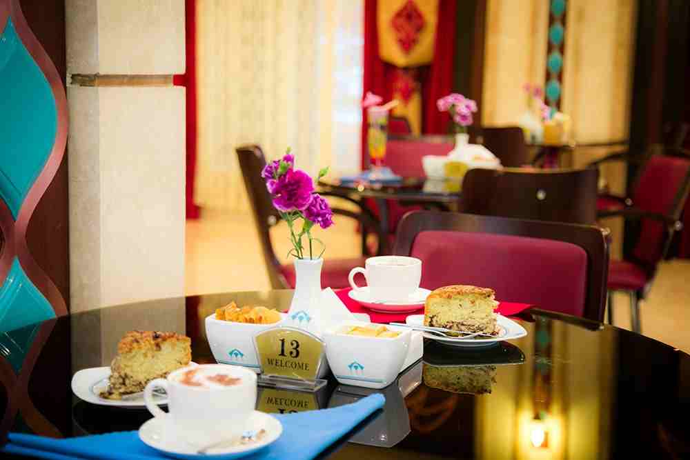 صبحانه در این هتل بهصورت بوفهی کامل سرو میشود و شامل انواع نان تازه، مربا، عسل، تخممرغ، کره، لبنیات، سوسیس، میوههای تازه و نوشیدنیهای گرم و سرد است. بوفهی صبحانه در سالن مخصوصی با نور طبیعی و موسیقی ملایم برگزار میشود که شروعی دلپذیر برای روز زائران است.