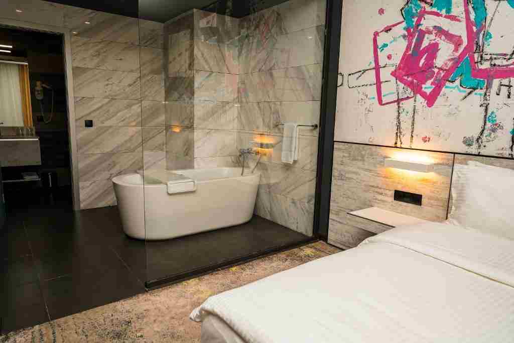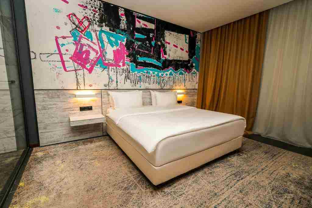 فضای اتاق‌ها روشن، منظم و دل‌پذیر است. دیوارهای روشن، مبلمان مینیمال و نور طبیعی، ترکیبی از سادگی و شکوه را به نمایش می‌گذارند. استفاده از متریال باکیفیت در دکوراسیون داخلی، نشان‌دهنده‌ی استاندارد بالای این هتل در طراحی فضاهای اقامتی است.