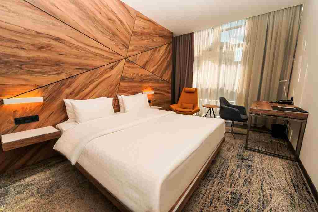 اتاق‌های هتل با طراحی امروزی، و چشم‌انداز شهری، محیطی دل‌نشین برای استراحت پس از گشت‌و‌گذار در شهر فراهم می‌کنند. هر بخش از این هتل با هدف راحتی مهمانان ساخته شده و خدمات آن متناسب با استانداردهای بین‌المللی ارائه می‌شود.