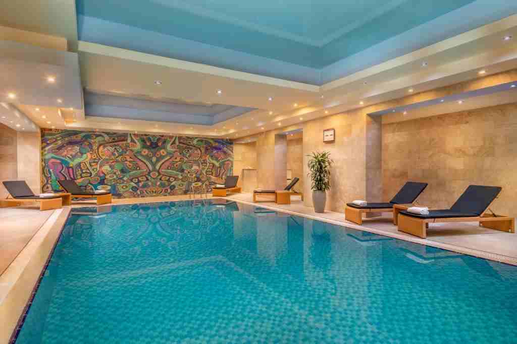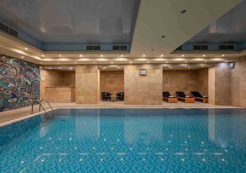 در طبقه پایین هتل، استخر سرپوشیده با طراحی مدرن و نور ملایم قرار دارد که محیطی فوقالعاده برای ریلکسکردن پس از گشتوگذار روزانه در شهر است.