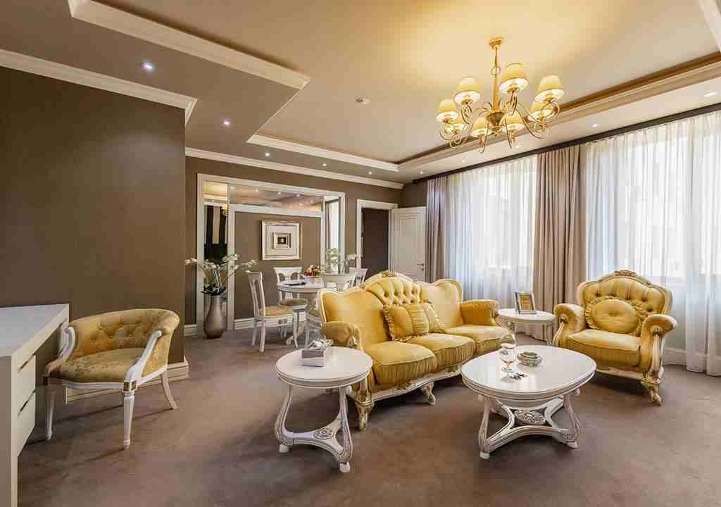 در این اتاقها مبلمان کلاسیک، پردههای سنگین، لوسترهای کریستالی و سرویس حمام مرمرین جلوهای باشکوه به فضا دادهاند. منظره زیبای شهر ایروان از پنجرههای بزرگ این اتاقها قابل مشاهده است.