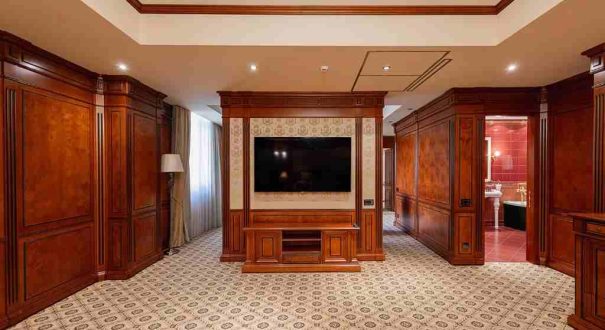 هر اتاق با دقت فراوان طراحی شده تا ضمن حفظ زیبایی بصری، نهایت آسایش را برای مهمانان فراهم کند. سقفهای بلند، پردههای مخملی سنگین، لوسترهای شیشهای و کفپوش چوبی، حس اقامت در یک قصر اروپایی را تداعی میکنند.