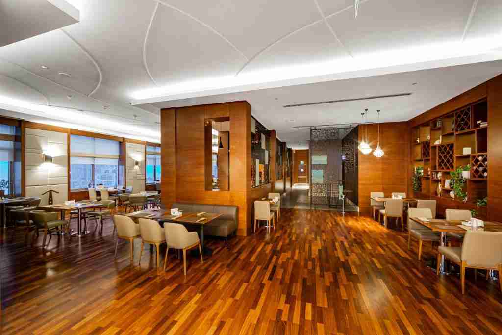 رستوران اصلی هتل با فضای مدرن، نورپردازی ملایم و چیدمان حرفه‌ای، محیطی آرام برای صرف وعده‌های روزانه فراهم می‌کند.