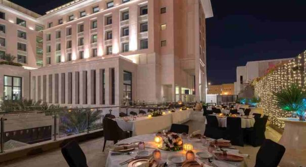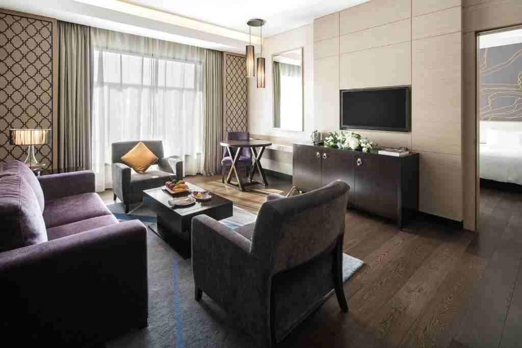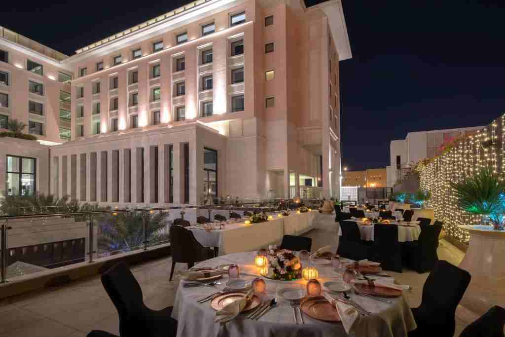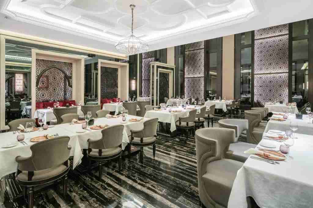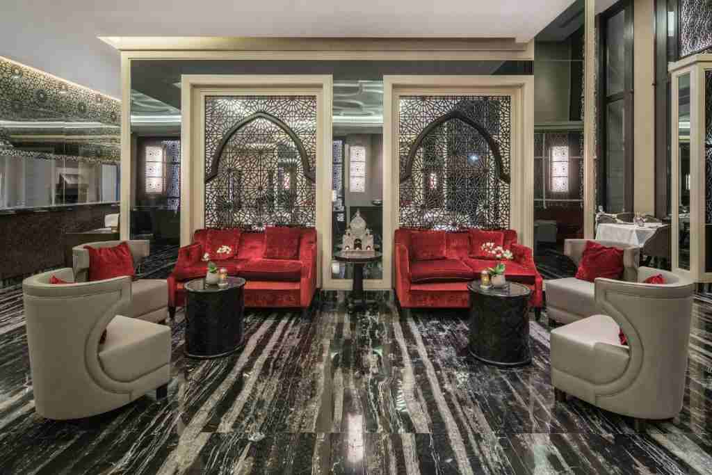 دکوراسیون اتاقهای هتل ترکیبی هنرمندانه از طراحی مدرن اروپایی و المانهای اصیل عربی است. استفاده از رنگهای گرم، متریال باکیفیت، نورپردازی ملایم و چیدمان دقیق، فضایی آرام و لوکس را در اتاقها ایجاد کرده است.