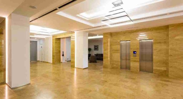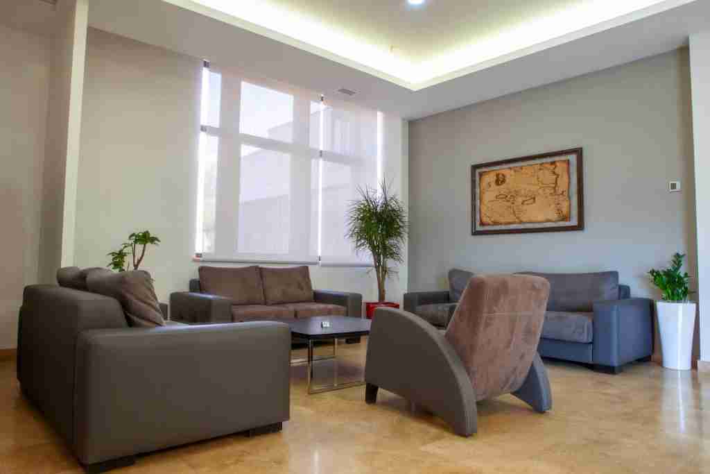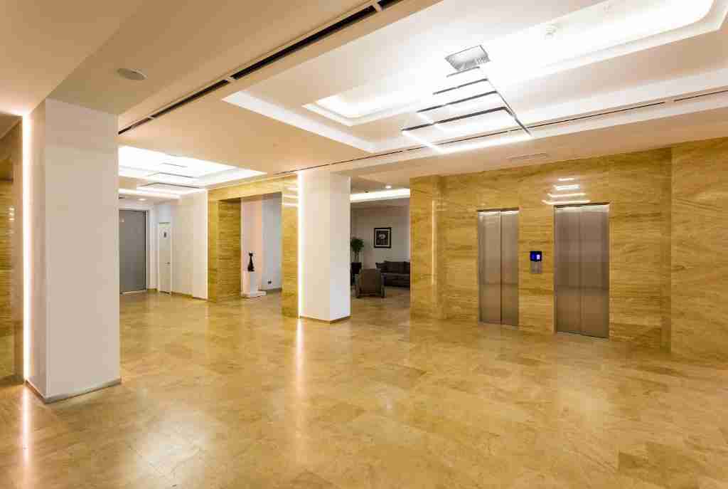 لابی بزرگ و نورگیر با مبلمان شیک، گل‌های طبیعی و نورپردازی گرم طراحی شده تا حس لوکس و صمیمی را منتقل کند.