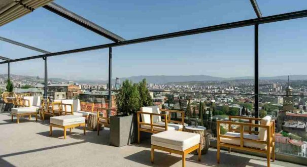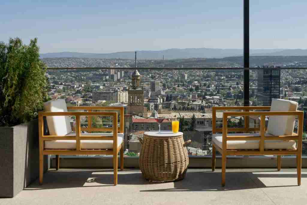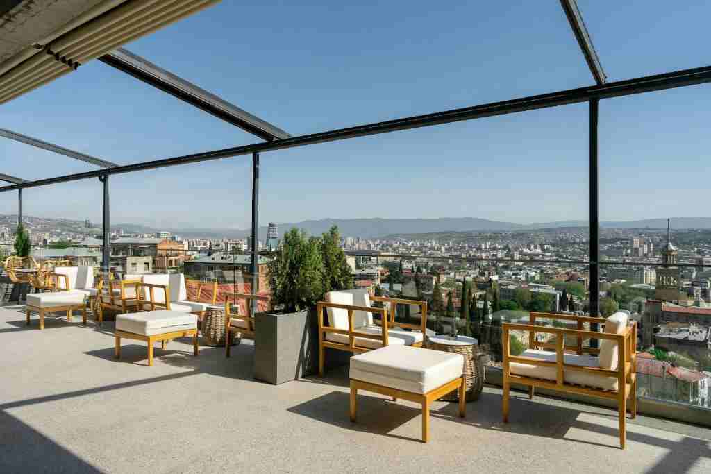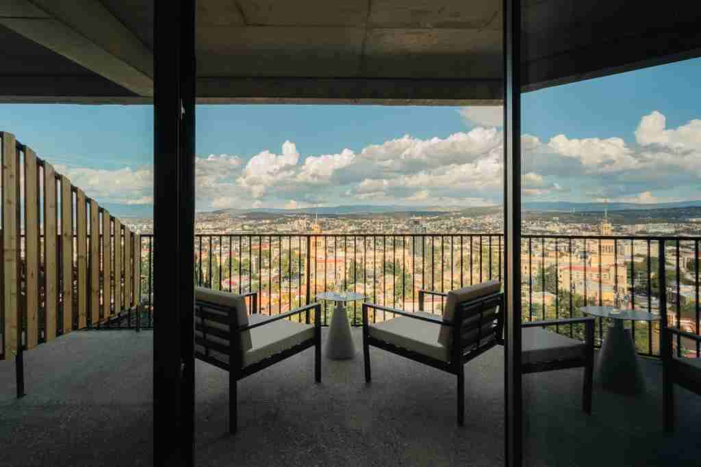 مهمانان میتوانند در این فضا ضمن استراحت یا مطالعه، از چشمانداز زیبای شهر تفلیس نیز لذت ببرند.