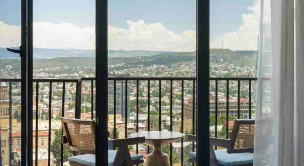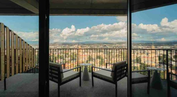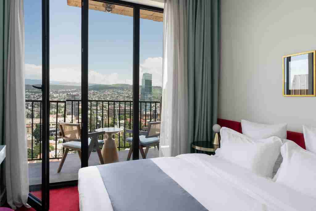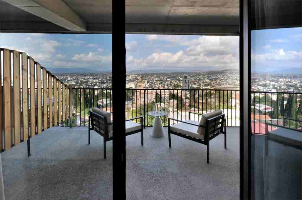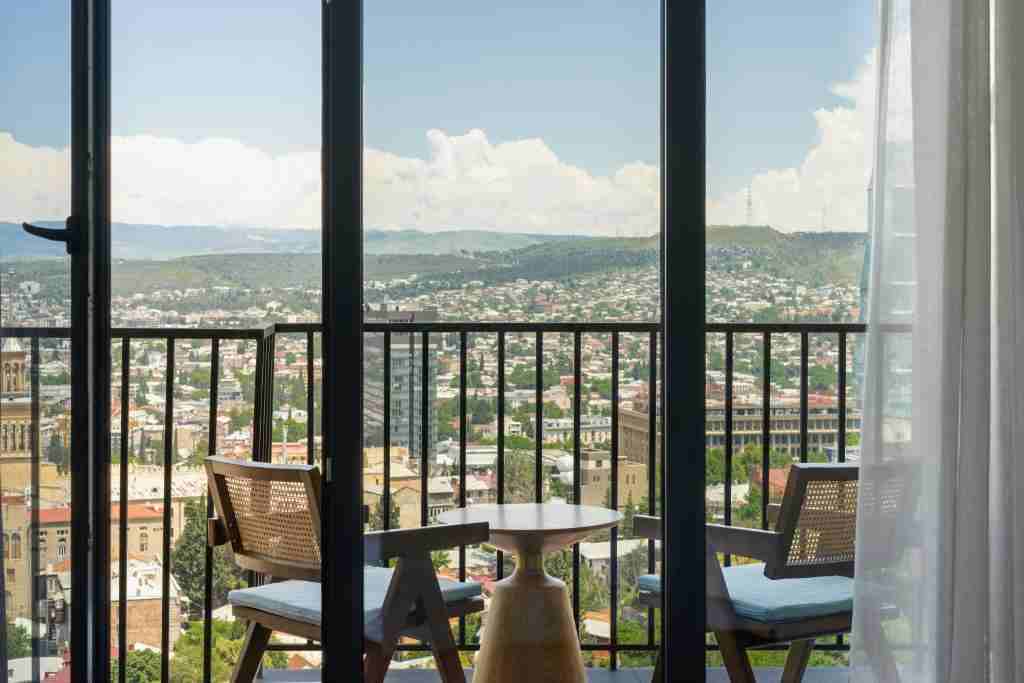 بالکن لوکس هتل کاستور و پولوکس تفلیس با چشمانداز شهر