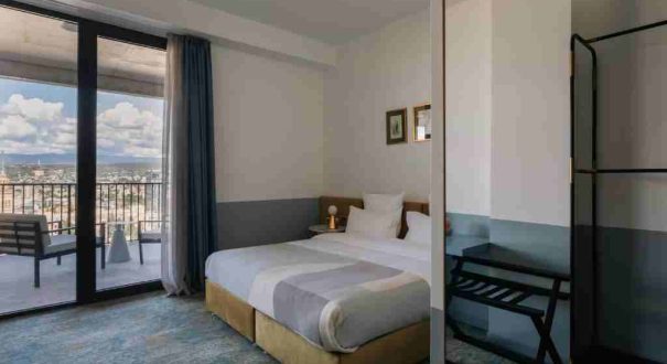 کفپوشهای چوبی، پردههای لطیف و مبلمان ساده اما باکیفیت، محیطی زیبا و تمیز ایجاد کرده است. در همه اتاقها، نور طبیعی از پنجرههای بلند وارد میشود و منظرهای چشمنواز از شهر تفلیس را پیش روی مهمانان میگذارد.