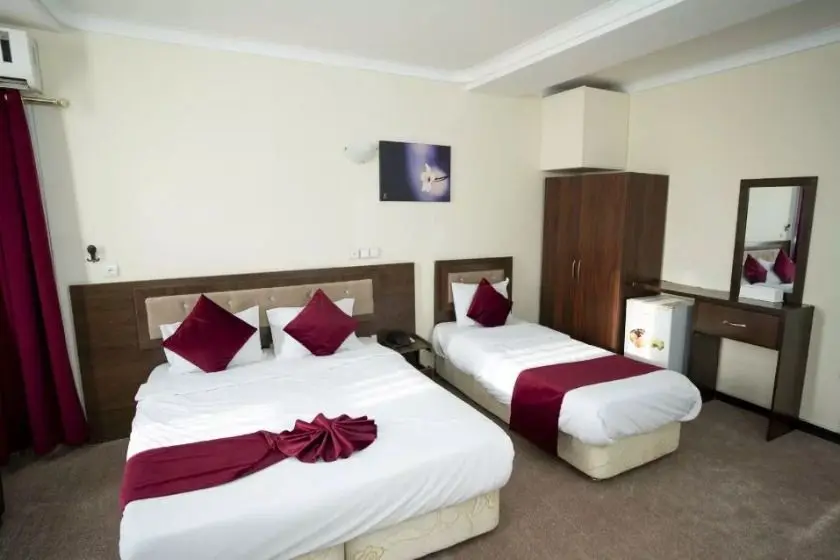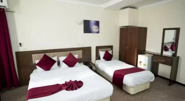 خانوادههای کوچک معمولاً این اتاق را انتخاب میکنند. ترکیب یک تخت دونفره + یک تخت تکنفره فضای خواب مناسبی فراهم میکند و دکوراسیون ساده و نورگیر اتاق حس راحتی را افزایش میدهد. اتاق سهتخته فضای کافی برای چیدمان چمدانها دارد و برای اقامتهای چندروزه بسیار ایدهآل است. تلویزیون، یخچال، اینترنت رایگان و سرویس کاملاً تمیز از امکانات اصلی این اتاق هستند.