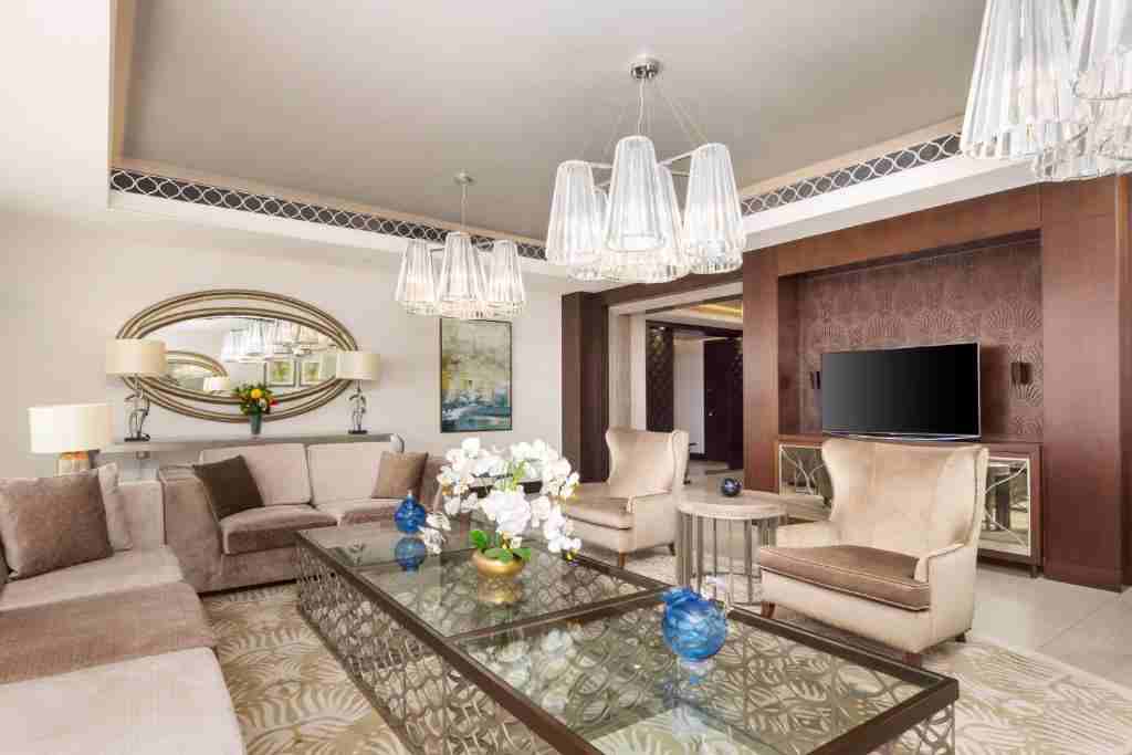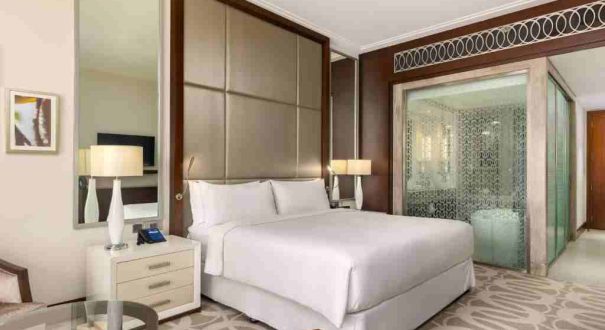 سوئیتی لوکس با یک تخت کینگ و فضای وسیع که تجربهای متفاوت از اقامت پنجستاره را در دبی ارائه میدهد.